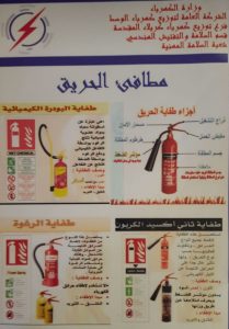 مؤكدا على ” توخي مسالك الهروب من المخاطر وكيفية إستخدام كل أنواع المطافي والعدد الميكانيكية والكهربائية وفق هذه المواصفات المتقدّمة “.