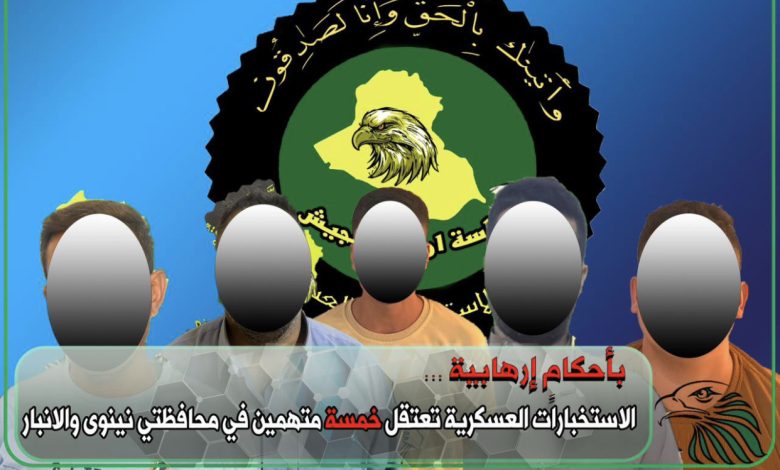 الاستخبارات العسكرية تلقي القبض على خمسة متهمين في محافظتي نينوى والانبار