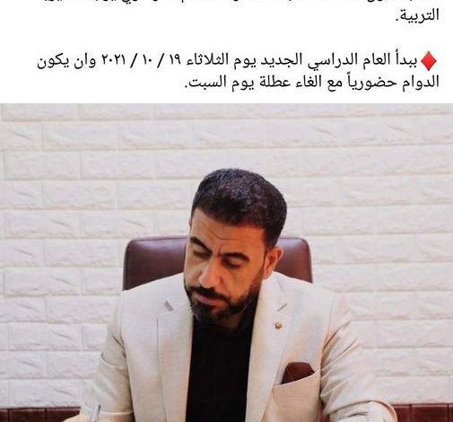 بعد أن أشعل منشور نائب محافظ النجف الأشرف السيد هاشم نجم الكرعاوي، حول تحديد موعد عودة الدوام الرسمي في المدارس وبشكل حضوري، مديرية تربية المجف ترد بمنشور توضيحي على هذا القرار.
