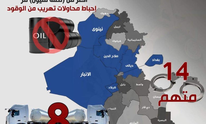 أحبط جهاز الأمن الوطني في العراق محاولاتٍ لتهريب كميات من الوقود تُقدر بأكثر من (نصف مليون) لتر، ضمن سلسلة عملياته للحد من تهريب المشتقات النفطية.