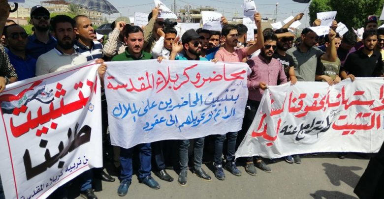 المحاضرون المجانيون في كربلاء يتظاهرون للمطالبة بحقوقهم
