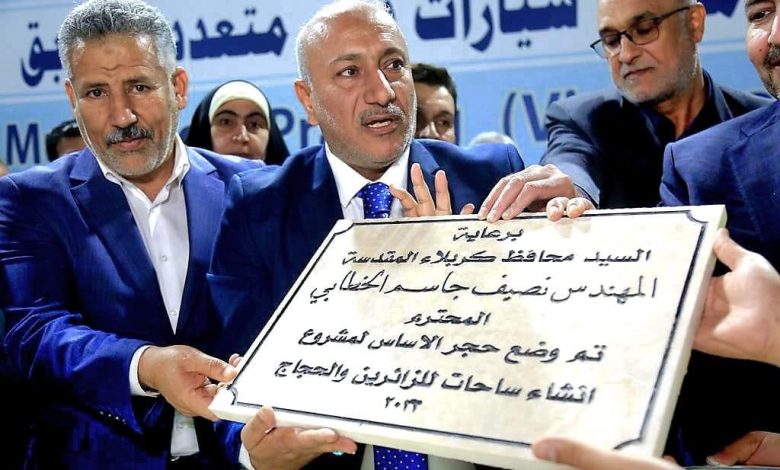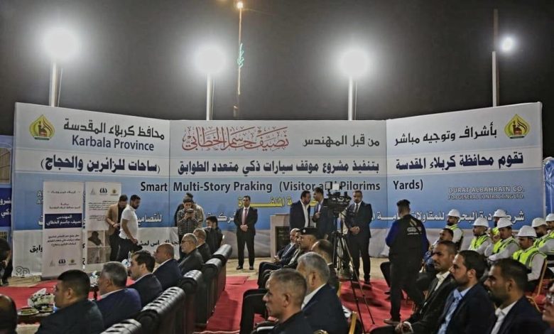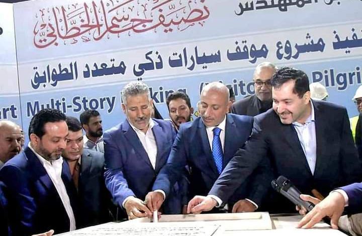 بالصور:محافظ كربلاء المقدسة المهندس نصيف جاسم الخطابي يضع حجر الاساس لمشروع انشاء موقف سيارات ذكي متعدد الطوابق في خدمة الزائرين واهالي المدينة المقدسة