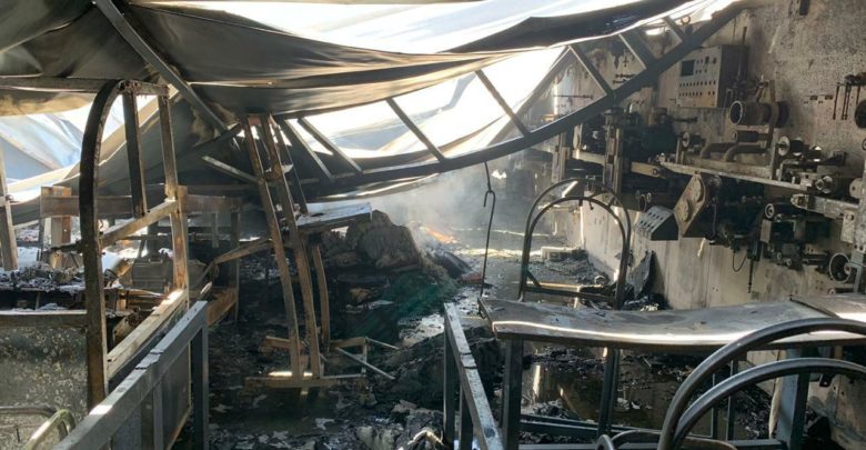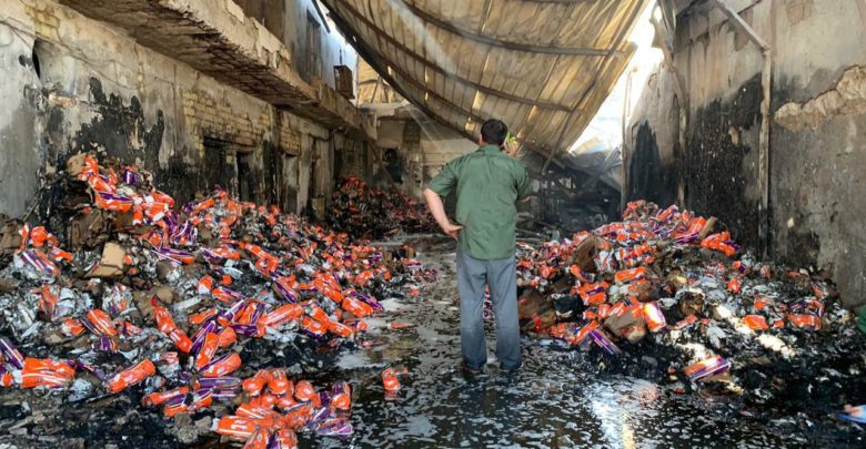 بالصور: حريق كبير في معمل لصناعة الحفاظات في منطقة المعملجي بكربلاء