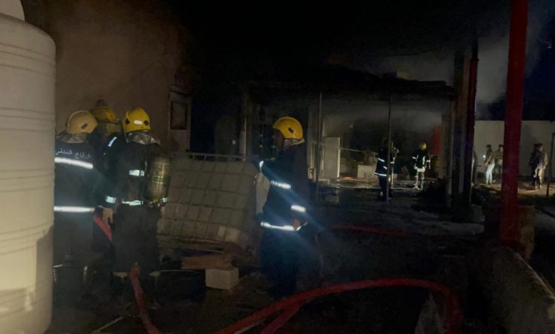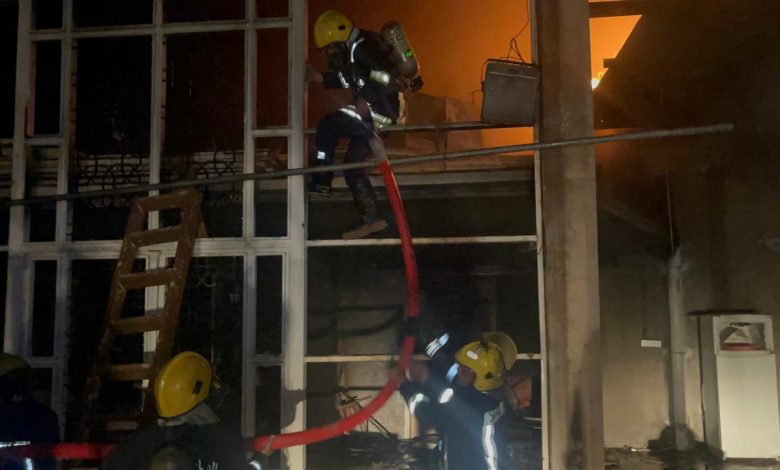 بالصور… فرق الدفاع المدني تخمد حريق اندلع داخل حسينية في كربلاء