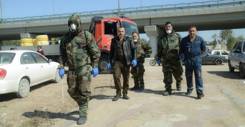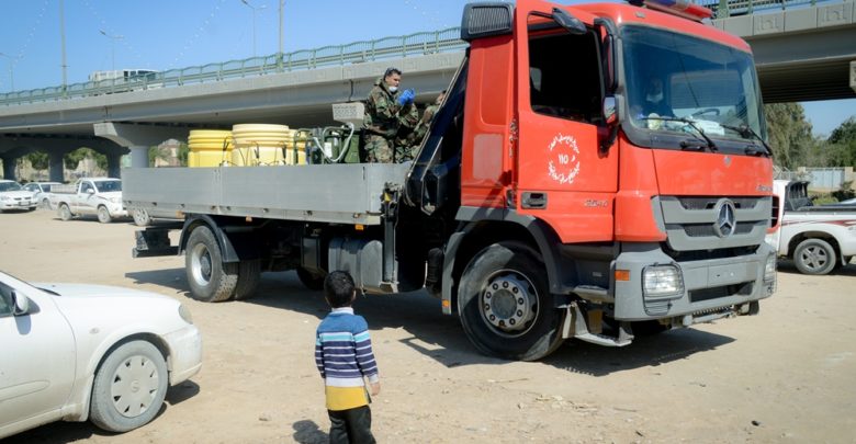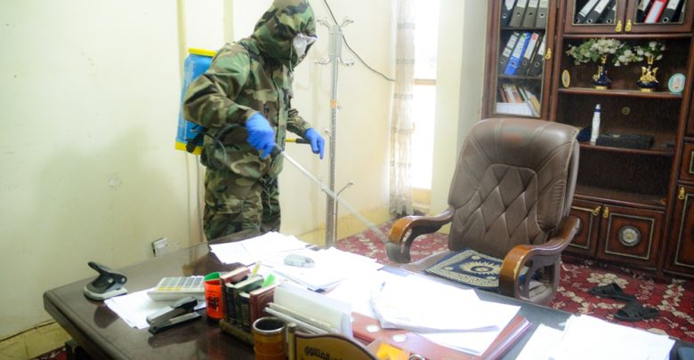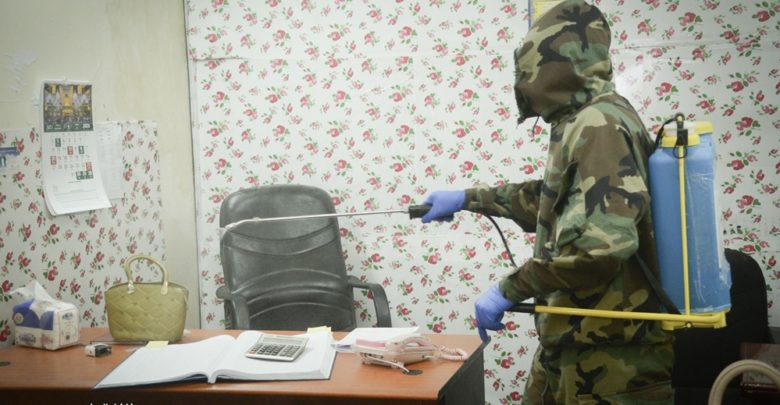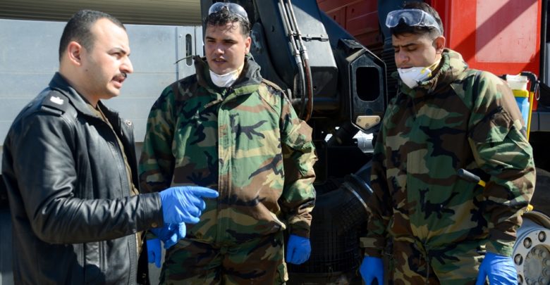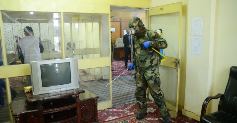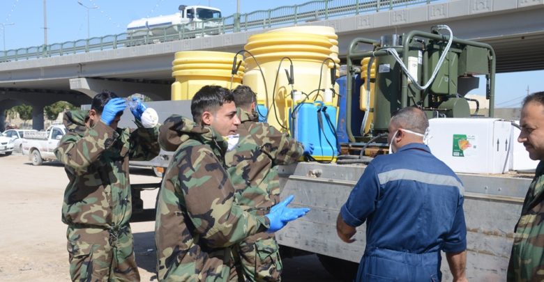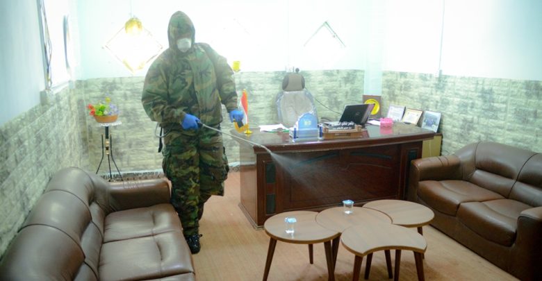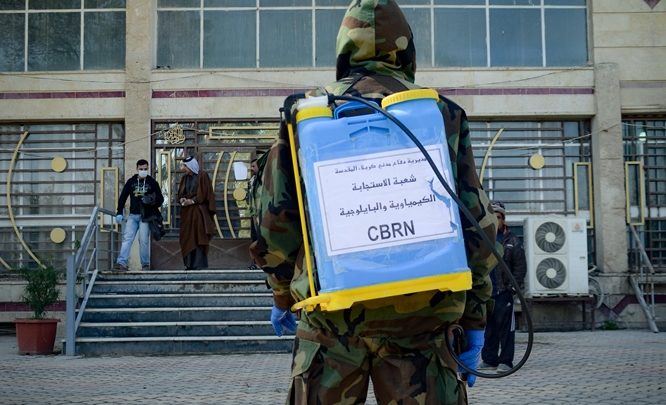 بالصور/ فريق CBRN التابع لمديرية دفاع مدني كربلاء ينفذ حملة تطهير واسعة في العديد من دوائر الدولة للحد من خطر الاصابة بمرض كورونا .