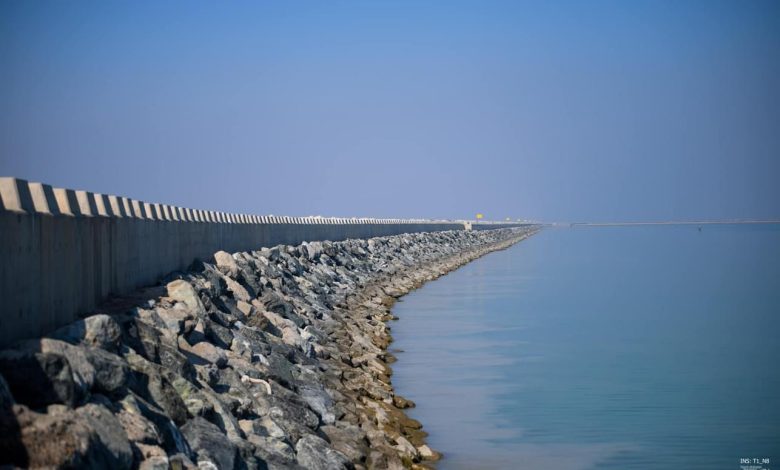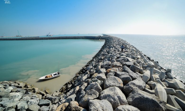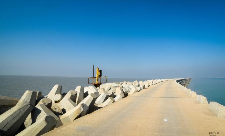 بالصور … كاسر الأمواج الاطول في العالم الذي دخل موسوعة غينيس للأرقام القياسية الواقع في ميناء الفاو جنوب العراق والبالغ طوله 14,5 كلم