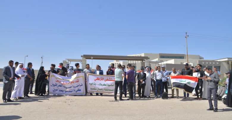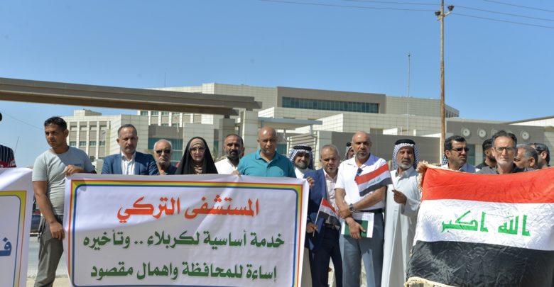 بالصور: مواطنون يتظاهرون داخل المستشفى التركي في كربلاء..
