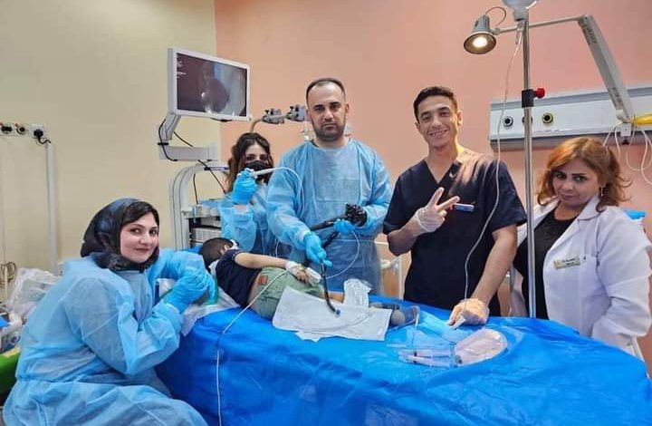بعملية ناظورية فريق طبي في مستشفى حماية الأطفال بمدينة الطب يستخرج كرة زجاجية من أمعاء طفل بعمر ٣ سنوات