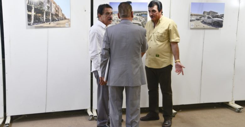 افتتح تجمع”فنانوالعراق” معرض للتصوير الفوتوغرافي على قاعة الفنان محمدغني حكمت في المركز الثقافي البغدادي بشارع المتنبي يوم الجمعة 3/5/2019 , بمشاركة مجموعة من المصورين الذين أرشفوا بعدساتهم حجم الخراب والدمار التي تركته عصابات داعش الارهابية في مدينة الموصل حيث قام تجمع “فنانو العراق” في وقت سابق بتنظيم سفرة لأعضائه من المصورين لمدينة الموصل بالتنسيق مع القوات الامنية بعد اعلان النصر على داعش الارهابية وتوثيق كل ما دمرته تلك العصابات من استهداف للمدنيين العزل والمدن الاثرية والدينية المختلفة وتدمير المباني و البنى التحتية للمحافظة ، وقد طبعت الصور الملتقطه على شكل كتاب صدر بعنوان ( الموصل ) الذي يعد الاول من نوعه في العراق و دول المنطقة , وسط اشادات حكومية ومنظمات محلية ودولية بهذا المنجز , كما حضر الافتتاح السيد قائد عمليات بغداد الفريق الركن جليل الربيعي ومجموعة كبيرة من الشخصيات والثقافية الفنية والسياسية.