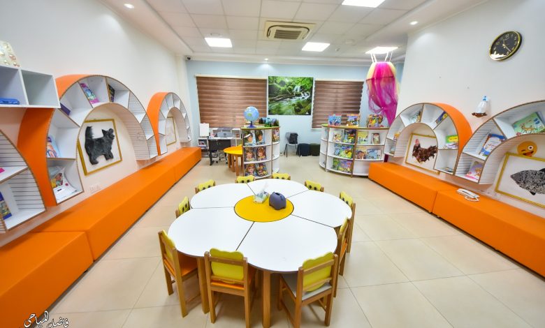 عدد الصفوف فيها (48) صف تضم (600_700) طفل بين صف يومي وجلسات خارجية .