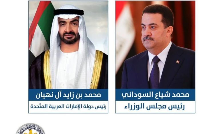 تلقى رئيس مجلس الوزراء، السيد محمد شياع السوداني، اتصالاً هاتفياً من رئيس دولة الإمارات العربية المتّحدة، سموّ الشيخ محمد بن زايد آل نهيان، جرى خلاله بحث العلاقات الثنائية بين البلدين، وسبل توطيدها، وكذلك مناقشة عدد من القضايا الإقليمية والدولية ذات الاهتمام المشترك.