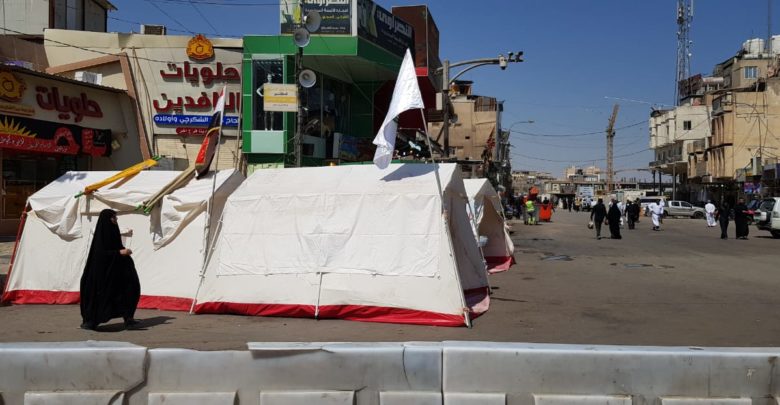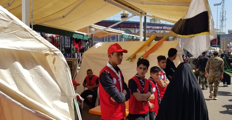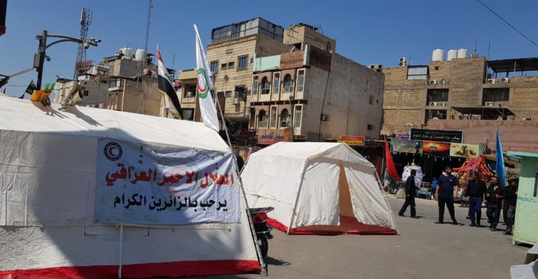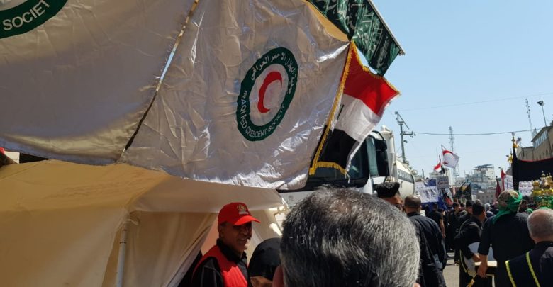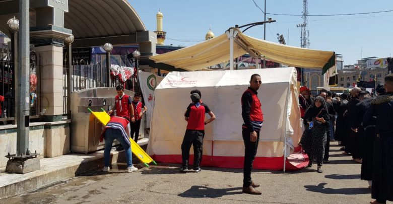 اشرفت كوادر جمعية الهلال الاحمر العراقي فرع كربلاء المقدسة بتقديم الخدمات الاسعافية والخدمية لزوار الامام الحسين واخيه العباس “عليهما السلام” وذلك بنصب المفارز الطبية