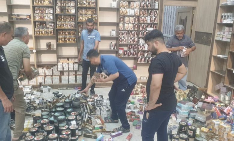 حملة مُوسعة لثلاثة أيام توالياً بكربلاء .. مُصادرة وإتلاف ( 12 ) طناً من مُستحضرات التجميل والعطورات مُنتهية الصلاحية