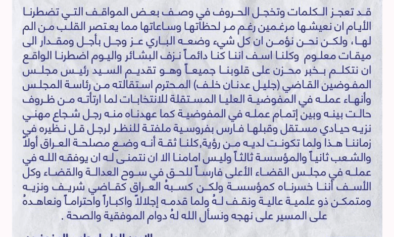 رئيس مجلس المفوضين جليل عدنان خلف يقدم استقالته من منصبه
