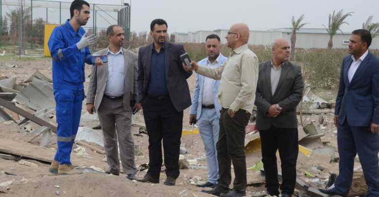 يتفقد موقع مطار كربلاء الدولي الذي إستهدف بأربعة صواريخ ليلة البارحة مما أدى الى إستشهاد أحد العاملين في الموقع وخسائر مادية كبيرة.