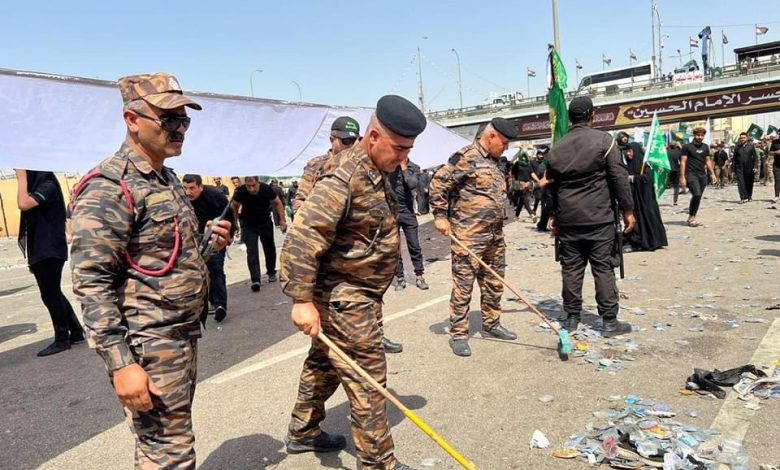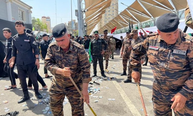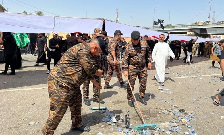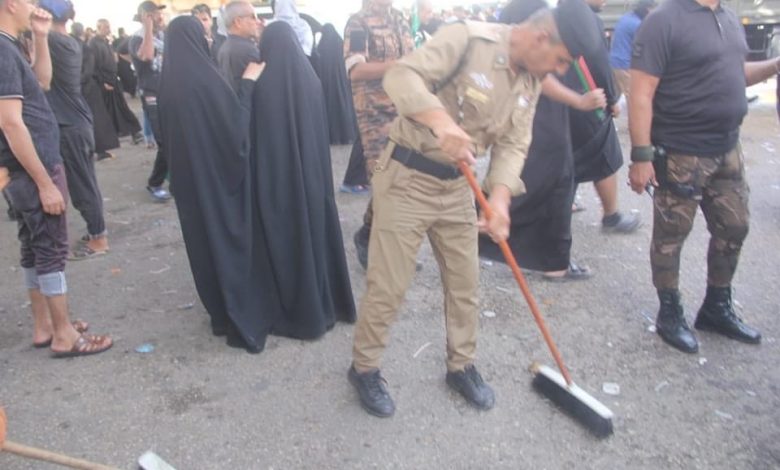 شرطة كربلاء تشرع بحملة تطوعية لتنظيف قواطع المسؤولية بعد انتهاء الزيارة