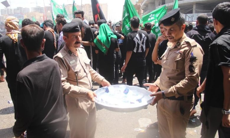حيث تنوعت الخدمات التي يقدمها منتسبينا من توزيع الماء على الزائرين وإسعاف الحالات الإنسانية إلى المستشفيات وتنظيف الشوارع إضافة الى واجباتهم الامنية.