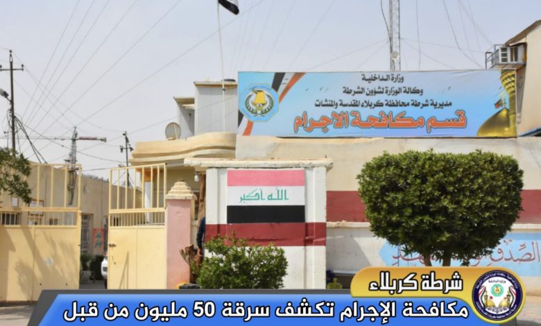 بتوجيه قائد شرطة محافظة كربلاء المقدسة اللواء أحمد علي زويني وضمن الجهود المتواصلة لأقسام وتشكيلات قيادة الشرطة ، تمكنت مفارز قسم مكافحة الإجرام من كشف عملية سرقة لمبلغ 50 مليون دينار عراقي من دار أحد المواطنين على يد عامل من إحدى الدول العربية،