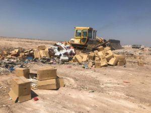 وأكد إنه ” تم إتلاف المادة المصادرة في مناطق الطمر الصحي وفق محضر رسمي بموجب نظام الأغذية رقم (4) لسنة 2011 وحسب قانون الصحة العامة رقم (89) لسنة 1981، وبحضور صاحب العلاقة، علاوة على فرض غرامة مالية بحقه وإغلاق مخزنه “.