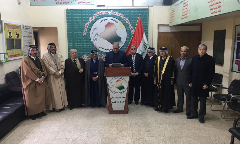وشارك في الوقفة لقراءة البيان الذي جرى بمكتب مجلس النواب في المحافظة، النائب الدكتور فراس المسلماوي والنائب الأسبق الأستاذ رياض غريب ومسؤول المكتب المشاور القانوني عباس فاضل الكَمبر، وتمّ تسليم البيان الموجّه الى مجلس النواب العراقي بيد أحد أعضائه الجُدد في المحافظة .