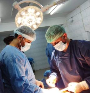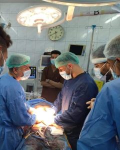 وقال رئيس الفريق الطبي ، أخصائي الجراحة العامة، الدكتور محمد جميل الحيدري في حديث لـ ( وكالة كان نيوز ) إن ” طوارئ المستشفى إستقبلت بعد منتصف ليل الجمعة الماضية مواطناً بعمر ( ٥٢ ) عاماً يعاني من إصابته بمقذوف ( طلق ناري ) في منطقة البطن وتسبب له بنزف كبير وتشوش في الوعي وعدم إنتظام فعالياته الحيوية وآلاماً حادة في أسفل الصدر والبطن، وبعد إجراء اللازم وتعويضه بالدم المفقود والبلازما من قبل ملاكات ردهة الطوارئ تمت إحالته بالسرعة الممكنة الى صالة العمليات لإجراء عملية فتح بطن إستكشافي إستغرقت أربعة ساعات متواصلة تبين خلالها وجود تجمع دموي في البطن أثر مناطق النزف المتعددة ووجود جرح في الجزء الوسطي من الأمعاء المستعرضة، إضافة الى وجود ( ٥ ) جروح أخرى في الأمعاء الدقيقة مع تمزق جزء من الأمعاء والمساريق بطول ( ٥٠ ) سم ، حيث تم إستئصالها بالكامل وإعادة الربط من جديد “.