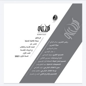 وقال رئيس تحريرها، الأديب والصحفي سلام البناي، انه ” مع إقتراب إطلالة العام الجديد ٢٠٢٢، إستلمت العدد الأول من مجلة (كربائيلو) وهي أول مجلة تخصّصية تُعنى بالثقافة والأدب تصدر عن إتّحاد الأدباء والكتاب في محافظة كربلاء المقدّسة ” مضيفاً ان ” محافظة كربلاء تستحق أن تكون لها مجلة ثقافية متخصّصة بنشر وتوثيق إبداعات مفكّريها ومثقّفيها وأدبائها وفنانيها والتواصل مع ماضيها المجيد وصولاً لمستقبلها المشرق، ولتكون مع مثيلاتها من المطبوعات الورقية التي تصدر عن إتّحادنا المركزي وبعض فروعه في المحافظات إحدى نوافذ نشر الثقافة والأدب ومتابعة آخر منجزات الأدباء وأخبارهم ” .