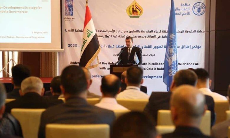 نظمت محافظة كربلاء، بالتعاون مع برنامج الأمم المتحدة الإنمائي وبدعم من منظمة الأغذية والزراعة (الفاو)، مؤتمراً لإطلاق استراتيجية تطوير القطاع الخاص في كربلاء المقدسة (2018-2030).