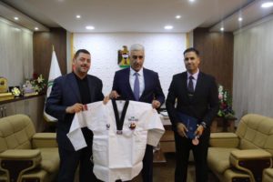 إستقبل وزير الشباب والرياضة، الدكتور أحمد رياض، اليوم الأحد في مكتبه، بطل التايكواندو (زمان أحمد چياد) ومدربه حسين الشحماني.