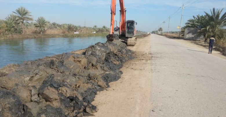 كما باشرت بتطهير مبزل الدخانية الفرعي من اجل تصريف مياه المبازل.