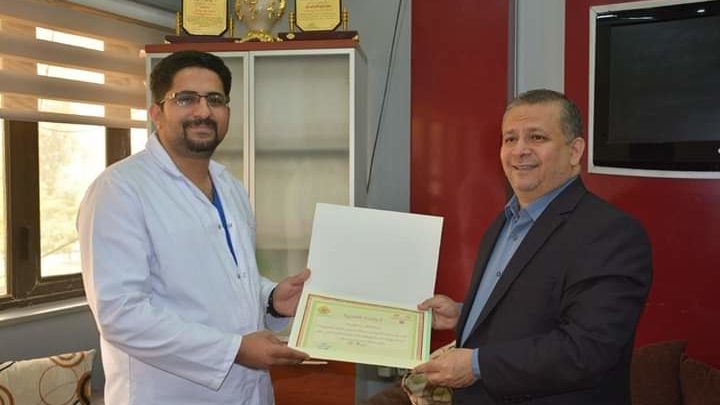 مدير عام صحة كربلاء يكرم مُقيماً دورياً بمستفى الهندية العام لانقاذه حياة سائق أجرة فاقداً للوعي ومتروكاً على الطريق المؤدي للقضاء