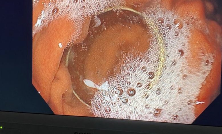 إستخرج فريق طبي وصحي مُختص في مركز كربلاء لأمراض وجراحة الجهاز الهضمي حلق ذهب من معدة إمرأة من أهالي المُحافظة في منتصف عقدها الثاني من العمر . وأفاد إختصاص دقيق جهاز هضمي ، الدكتور أحمد هاشم عباس ،في بيان حصلت عليه وكالة كان نيوز “بأن المركز ، إستقبل المُواطنة بعمر الـ ( 25 ) عاماً ، وقد إبتلعت بالخطأ قبل نحو ( 20 ) يوماً حلقة من الذهب إستقرت في جهازها الهضمي ، وتمت عملية إستخراجها بنجاح خلال ( 20 ) دقيقة فقط ” . وبيَن عباس ، إن ” المُواطنة الكربلائية ، كانت مُتأملة إنه مع مرور الوقت خروج الحلقة عند التبرز ، بعدها راجعت عدة أطباء بغية مُعالجتها ولكن بدون فائدة ، فما كان عليها سوى مُراجعة مركزنا وإنهاء مُعاناتها ” . وتابع ، بعد إجراء الفحص الطبي والمُختبري ، قرَرنا إخضاعها لتداخل ناظوري طارئ تكلل بالنجاح التام وإخراج الجسم الغريب من معدتها ، لتُغادر بعدها المركز وهي بصحةٍ جيدة ” . وشارك في مُعالجة المواطنة ، فريقاً ضم طبيبة التخدير ، الدكتورة ايمان جمعة القيسي ، وعدداً من الملاكات الطبية والصحية