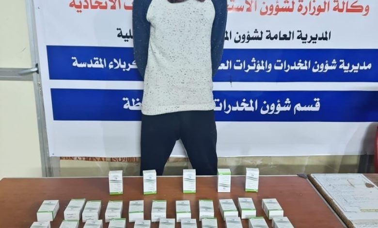 تمكنت مفارز مديرية شؤون المخدرات في كربلاء من القبض على تاجر للمواد المخدرة في أحد أحياء المحافظة ، بعد تشكيل فريق عمل برئاسة مدير المديرية وثلة من الضباط والمنتسبين ، وبعد جمع المعلومات ومقاطعتها تم التوصل إلى التاجر والذي يعمل في إحدى الصيدليات ، والقبض عليه بالجرم المشهود أثناء قيامه بعملية المتاجرة وبعد التعمق معه بالتحقيق إعترف صراحةً قيامه بتجارة المواد المخدرة ،