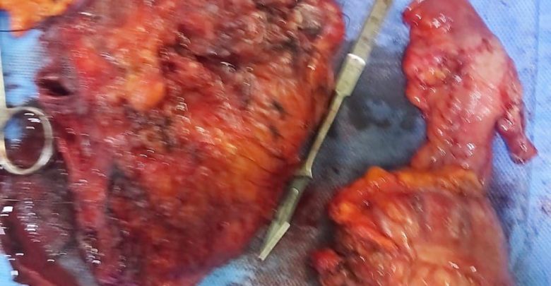 وقال أخصائي الجراحة العامة وجراحة الاورام الدكتور علي موسى الميالي في حديث ل(وكالة كان نيوز) إنه :”نجح وبمساعدة أخصائيو التخدير والجراحة البولية وجراحة الصدر والاوعية الدموية الدكتور عبد الامير نوري والدكتور محمد حميد المرشدي والدكتور صفاء العلي من “أجراء عملية جراحية لمريضة من أهالي المحافظة كانت تُعاني من ورم عنق الرحم الراجع مما أدى الى حدوث ناسور مع المثانة والمستقيم والمهبل وبعد أخذ المريضة العلاج الكيميائي تم إجراء عملية جراحية إستغرقت تسعة ساعات متواصلة وجرت في الجناح العام”.