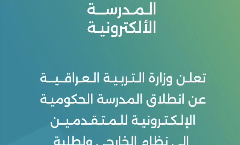وأوعز المكتب الإعلامي في الوزارة الى الراغبين بالتسجيل اتباع تفاصيل وخطوات التقديم الى منصة المدرسة الحكومية الالكترونية بعد تحميل التطبيق من متجر كوكل والذي يحمل اسم “المدرسة الالكترونية”