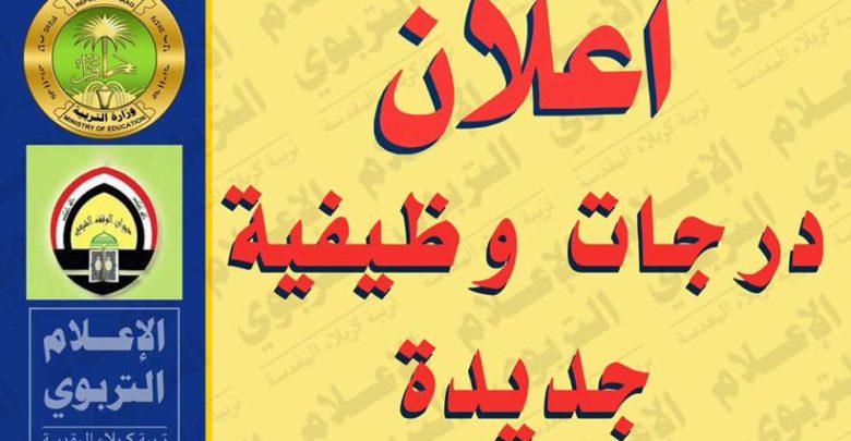 و1كر موقع الاعلام التربوي في كربلاء في بيان تلقته وكالة انباء كربلاء (كان نيوز):” أن الاعلان عن الدرجات الوظيفية سيتم تحديد موعده خلال الايام القليلة القادمة بعد مصادقة السيد محافظ كربلاء الاستاذ عقيل الطريحي عليها وأستكمال جميع الإجراءات التي تسبق عملية الاعلان عنها”.