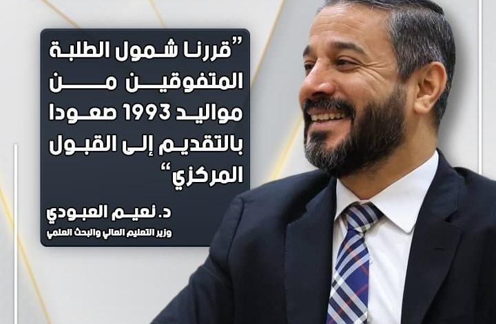 وزير التعليم يقرر شمول الطلبة المتفوقين من مواليد (1993 )صعودا بالتقديم إلى القبول المركزي